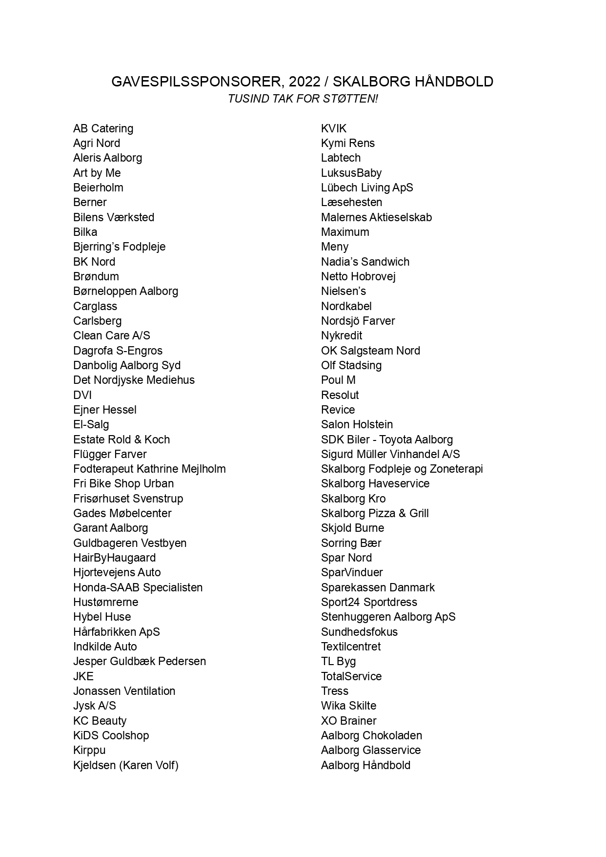 HOVEDSPONSORER I SSK